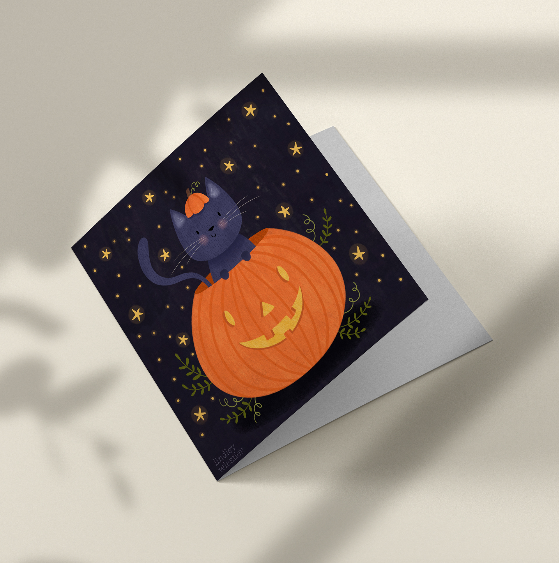 In my free time, I illustrated this Halloween cat in Adobe Photoshop and mocked it up on a greeting card!