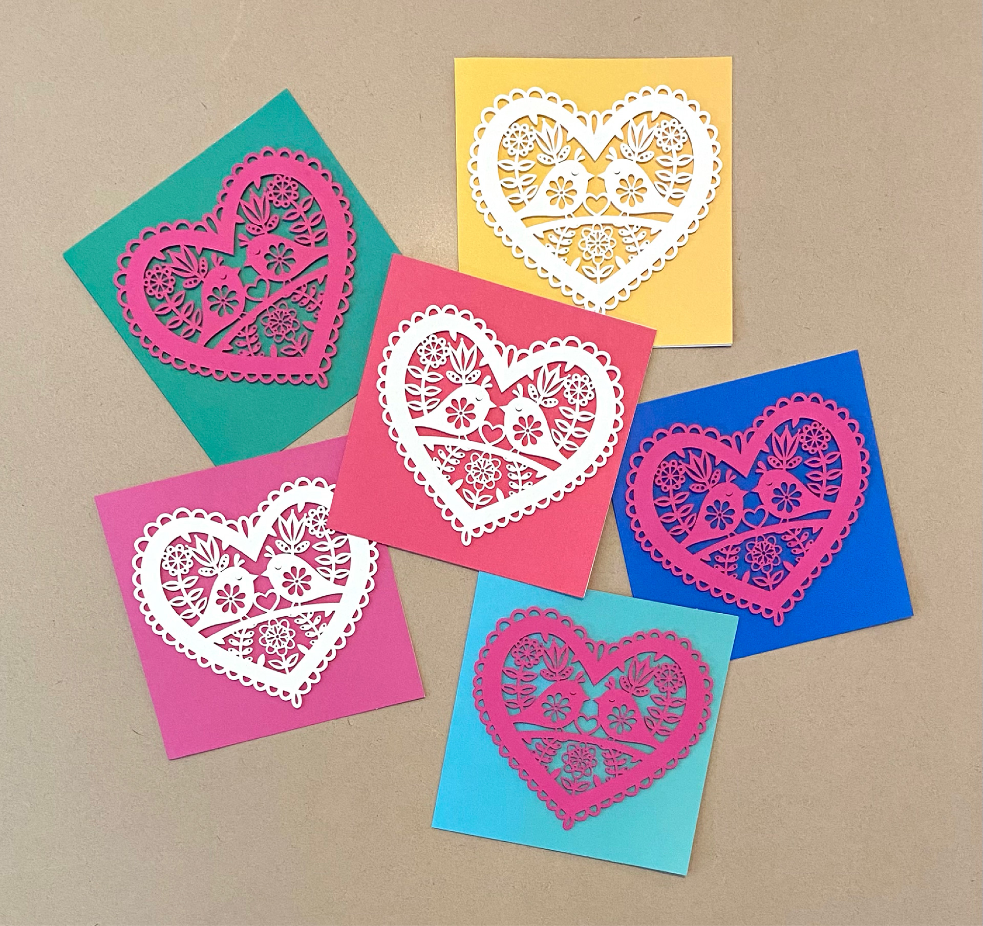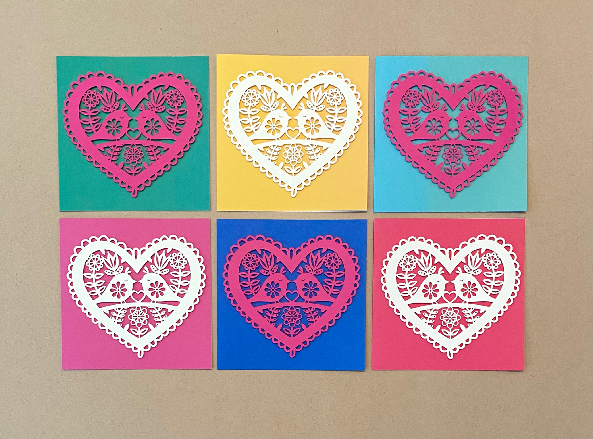 designed in adobe illustrator, cut on cardstock using cricut maker, assembled with dimensional foam tape on card base. created as valentine's day gifts for my parents and sisters!