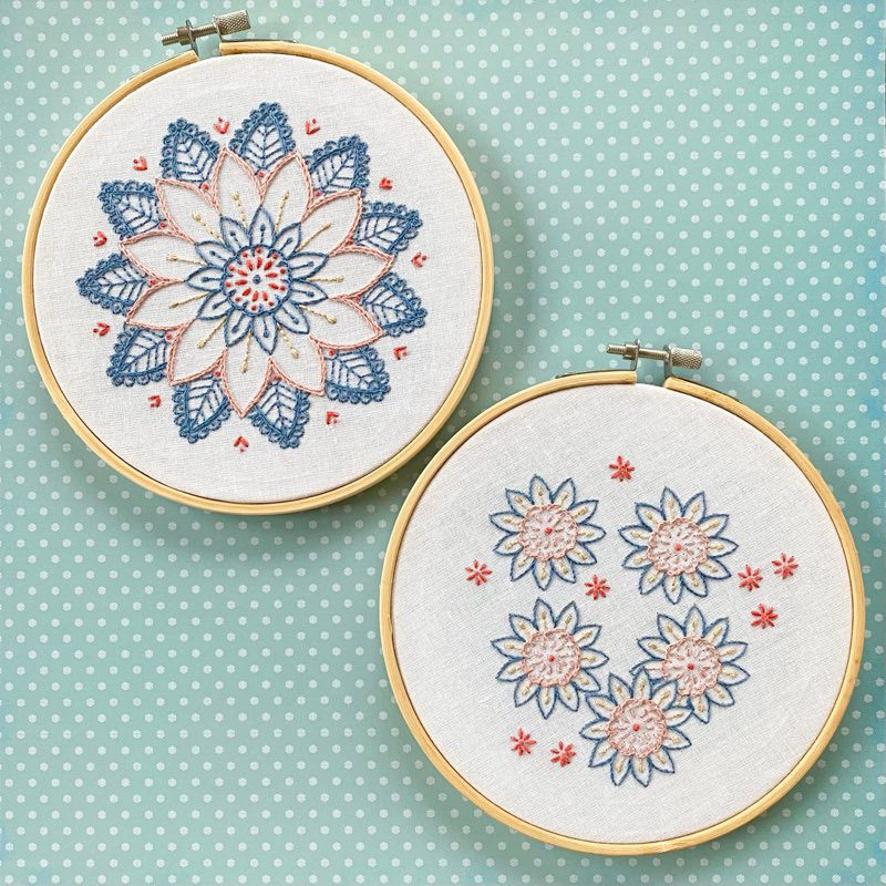 For Christmas, I received a DMC embroidery kit and learned how to use many different stitches to embroider two beautiful mandala designs!