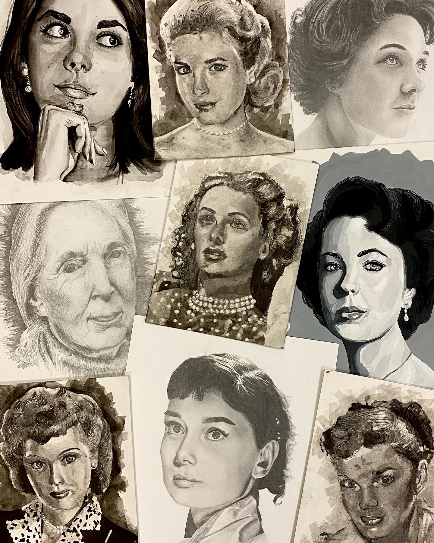 I created these portraits for myIllustration Materials and Techniques course at SCAD. See process photos and descriptions of materials below!